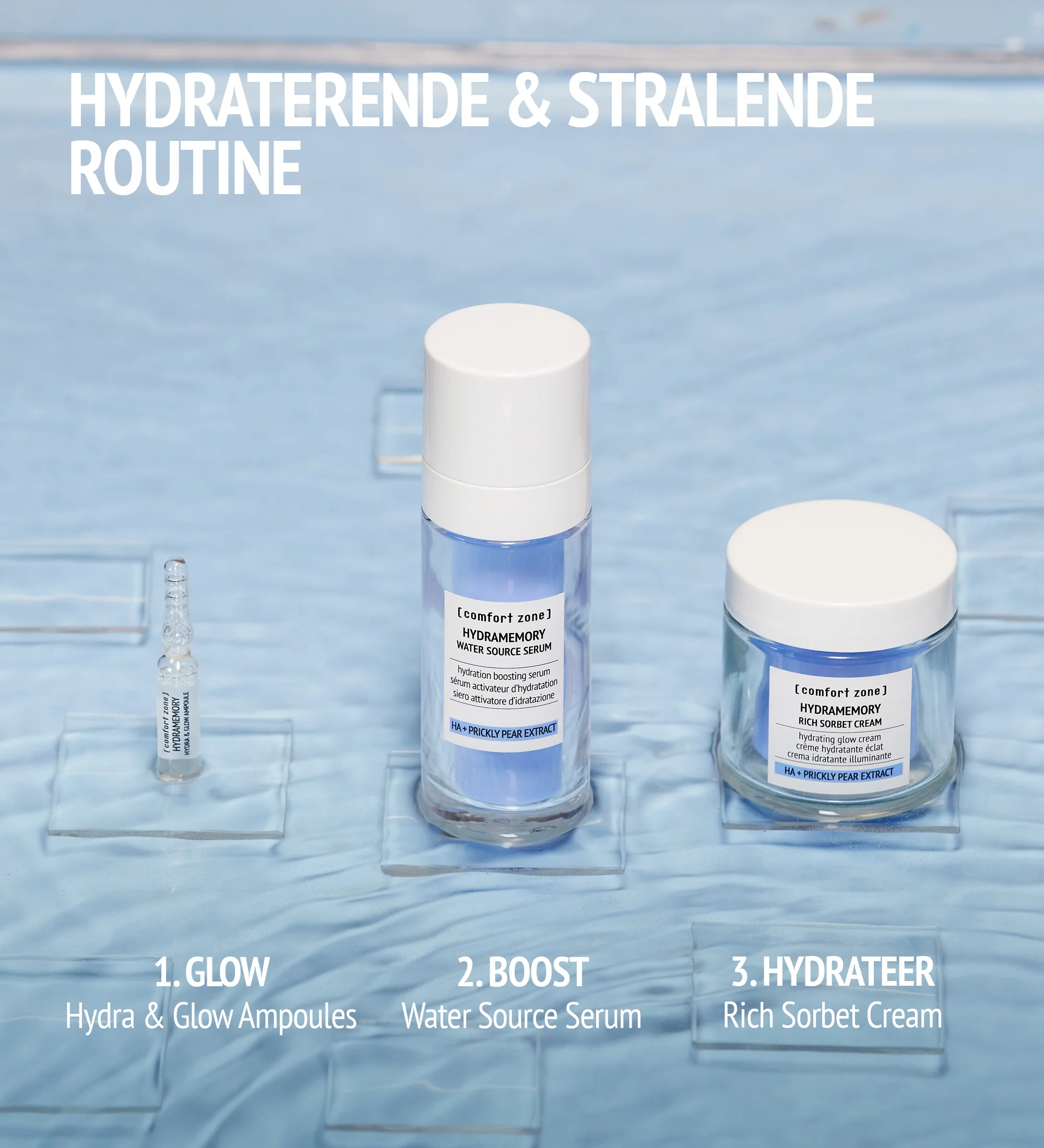 Plaats de druppelteller op de kop van de flacon en open met een resolute beweging de flacon door deze te breken in het verlengde van de voorgesneden ring. Verwijder het gebroken deel en plaats de druppelteller op de hals van de geopende flacon. Oefen lichte druk uit op de druppelteller zodat ongeveer de helft van de inhoud op de palm van uw hand terechtkomt. Dep het product op uw gezicht, hals en borst totdat het volledig is opgenomen. Breng vervolgens uw gebruikelijke serum en crème aan. Herhaal deze toepassing ’s morgens en ’s avonds. Vermijd contact met de ogen.