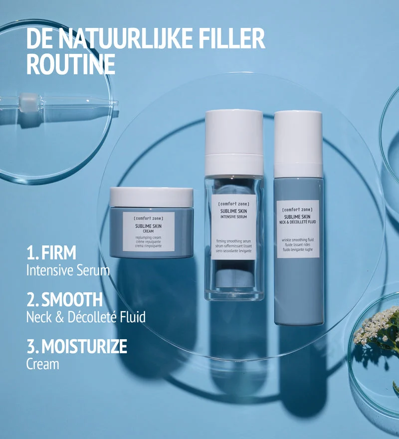 93% van de vrouwen bevestigt dat hun gezicht er jonger uitziet** Klinisch bewezen dat het de gladheid, textuur en stevigheid van de huid verbetert*** *onafhankelijk laboratorium, instrumentele evaluatie, 40 vrouwen, 28 dagen gebruik. **zelfevaluatie, 60 vrouwen na 28 dagen. ***stevigheid en textuur: onafhankelijk laboratorium, klinische evaluatie, 40 vrouwen, 28 dagen gebruik. Versteviging: onafhankelijk laboratorium, instrumentele evaluatie, 20 vrouwen, 28 dagen gebruik van Serum+Fluid Cream of Serum+Crème.