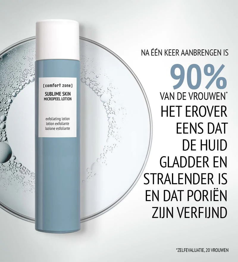 95% is het ermee eens dat de huid goed is voorbereid op het volgende product. 95% is het ermee eens dat de huid zacht en glad aanvoelt. 90% is het ermee eens dat het product de poriën verfijnt. 90% is het ermee eens dat het product de doffe huid doet stralen. *onafhankelijk laboratorium, zelfevaluatie, 20 vrouwen, na 1 keer gebruiken.