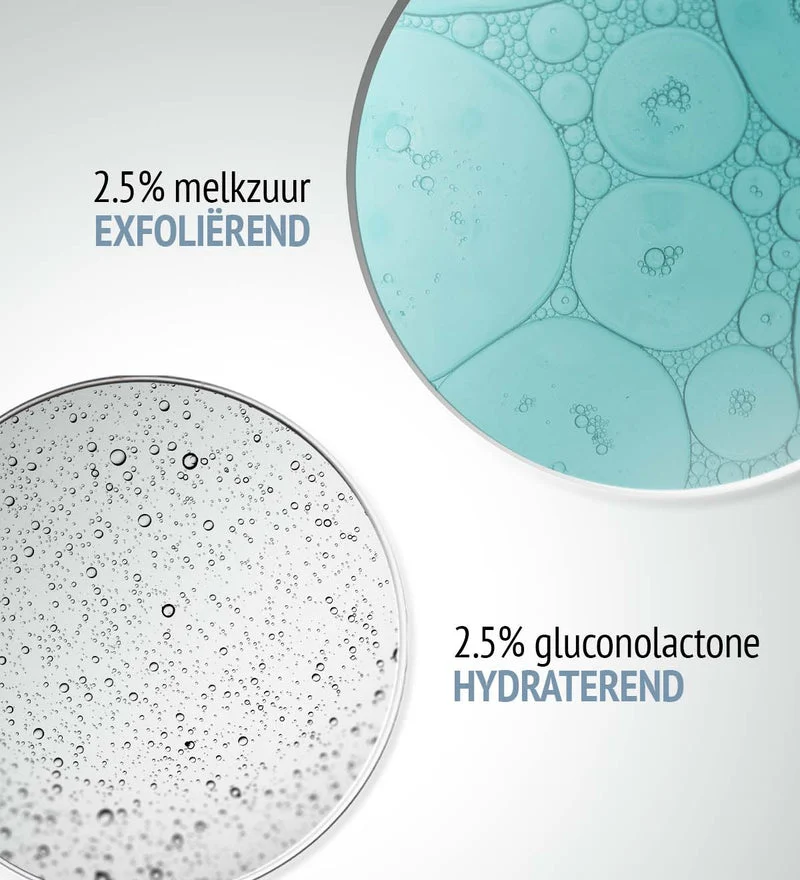 Perfectionerende gezichtslotion op basis van melkzuur en gluconolacton voor een milde en geleidelijke dagelijkse micro-exfoliatie.