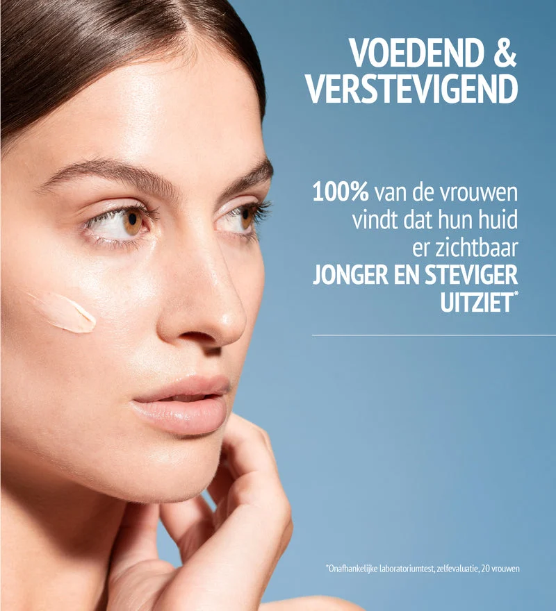 Ontwikkeld voor de zeer droge of rijpere huid die minder stevig is en een doffe teint heeft. Geeft een gevoel van comfort en diepe voeding dat de hele dag aanhoudt. Verstevigt en verstevigt de huid zichtbaar, waardoor deze gevoed en verstevigd wordt. EFFICIËNTIETEST: