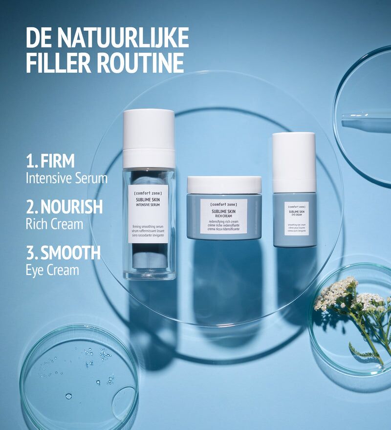 Vermindert wallen en rimpels. Opvullend effect. Oogheelkundig getest. Vrij van parfum