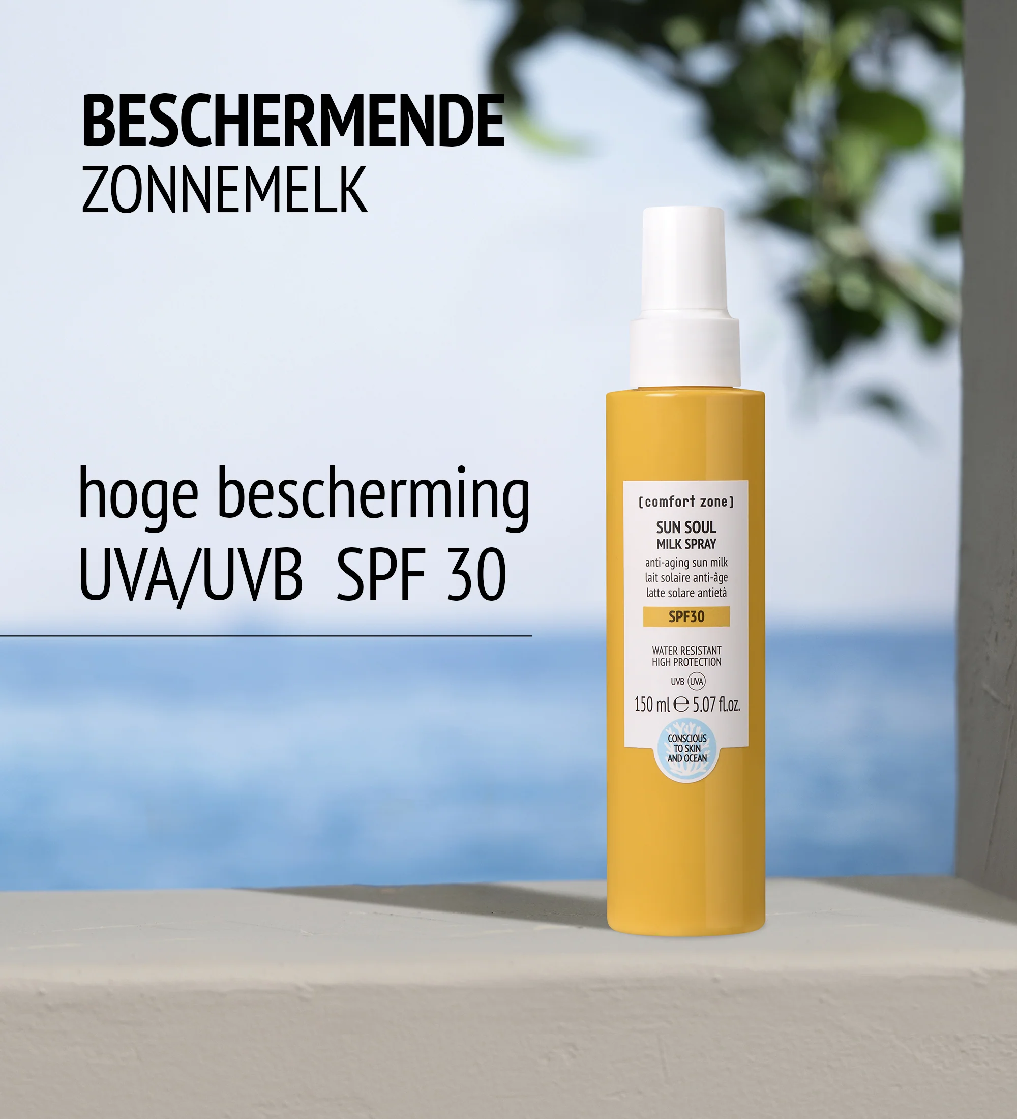 Uit geavanceerd onderzoek [comfort zone}, de laatste generatie van bewuste lichaamsverzorging tegen de zon die zowel effectief is in het beschermen van de huid tegen UVA/UVB stralen & fotoveroudering, als het beschermen van het milieu. De ultralichte, waterbestendige en snel geabsorbeerde textuur wordt versterkt met niet-nanofotostabiele filters, een anti-ageing DNA-DEFENSE peptide en een antioxidant Acerola-extract. De resultaten: uitdroging tegengaan en fijne lijntjes vervagen. Consious skin science formule met 90% veilige ingrediënten voor het aquatisch milieu**